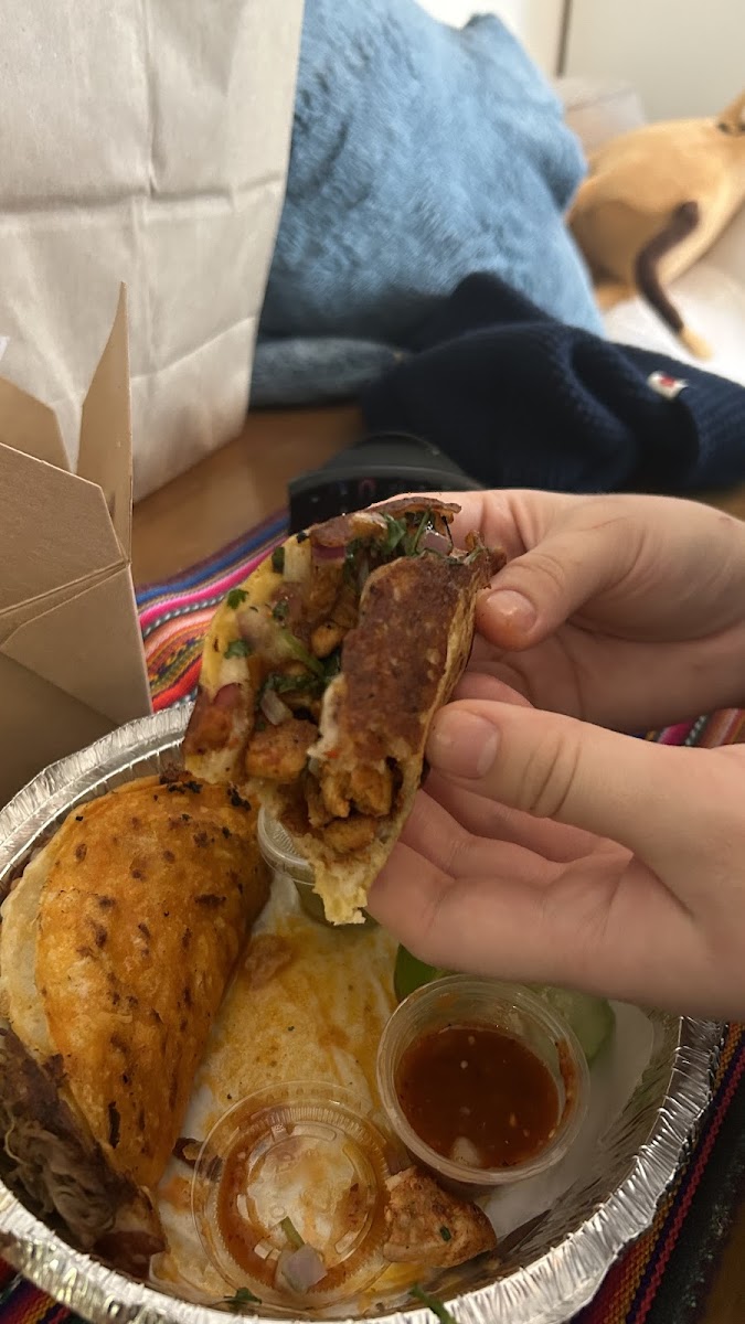 Great food, ambiance and service! Our food came out within 10 minutes and the portions are HUGE! I got the Birria Ramen and I swear half of it was filled with meat. I absolutely devoured the chicken taco and the queso-birria looked delectable-- perfect golden brown. Everything was well-seasoned and all of the vegetables/greens (onion, cilantro, salsas, etc) tasted really fresh. The lady at the counter was very sweet and kind. She let us know where everything was (water, sauces, etc) and was very patient while we were deciding what to get. All tables and entire dining area looked very clean as well, I would really recommend this place to those who live near the Ave!